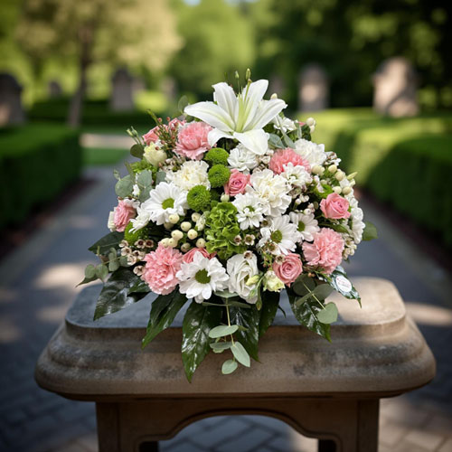🌿 Centro mediano de flores naturales tonos en blancos y rosas con varios verdes variados.