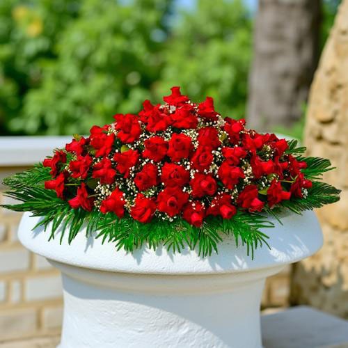 🌿 Espectacular centro de rosas rojas grande, Gipsophila blanca y verdes variados