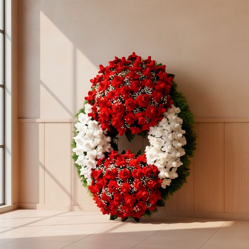 🌿 Corona grande de 2 cabeceras toda de rosas naturales extras con tubos de agua para su mayor duración y verdes variados.